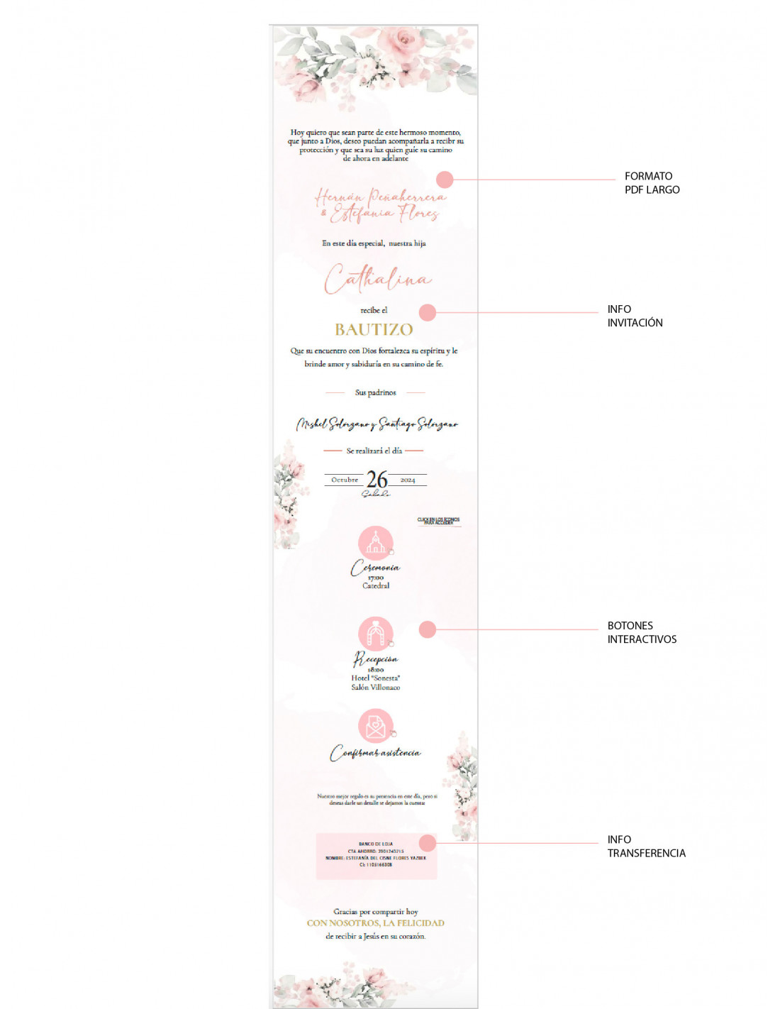 Incluye hasta 3 botones interactivos a elección ( Ver ubicación de iglesia, recepción, confirmar asistencia, etc).