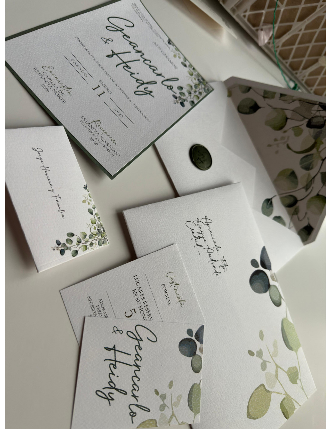 - Sobre de adhesión + nombre del invitado + info transferencia