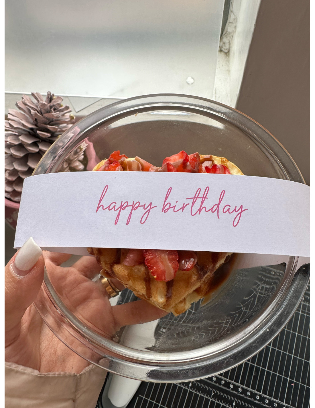 - Waffles (Circulares o corazón) + Chocolate + Fresas